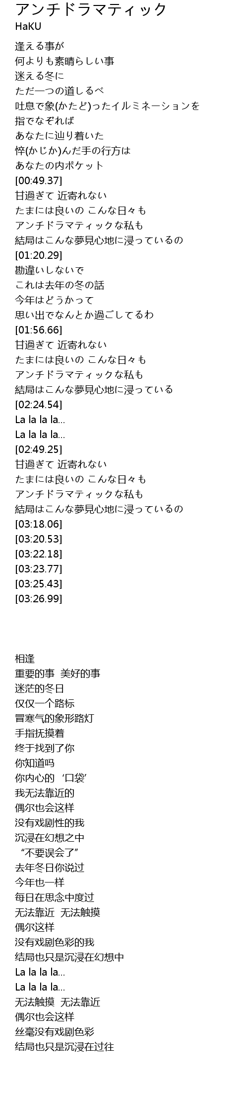 | [03:01.96] | アンチドラマティックな私も |