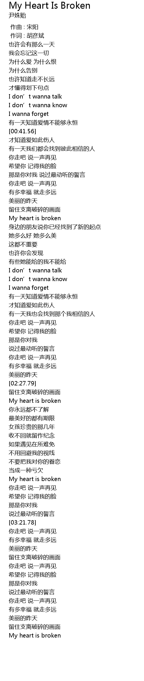 | [03:04.01] | My heart is broken |