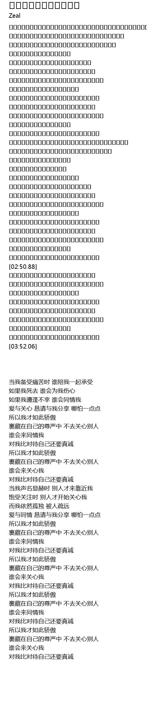 | [02:31.69] | 裹藏在自己的尊严中 不去关心别人 |