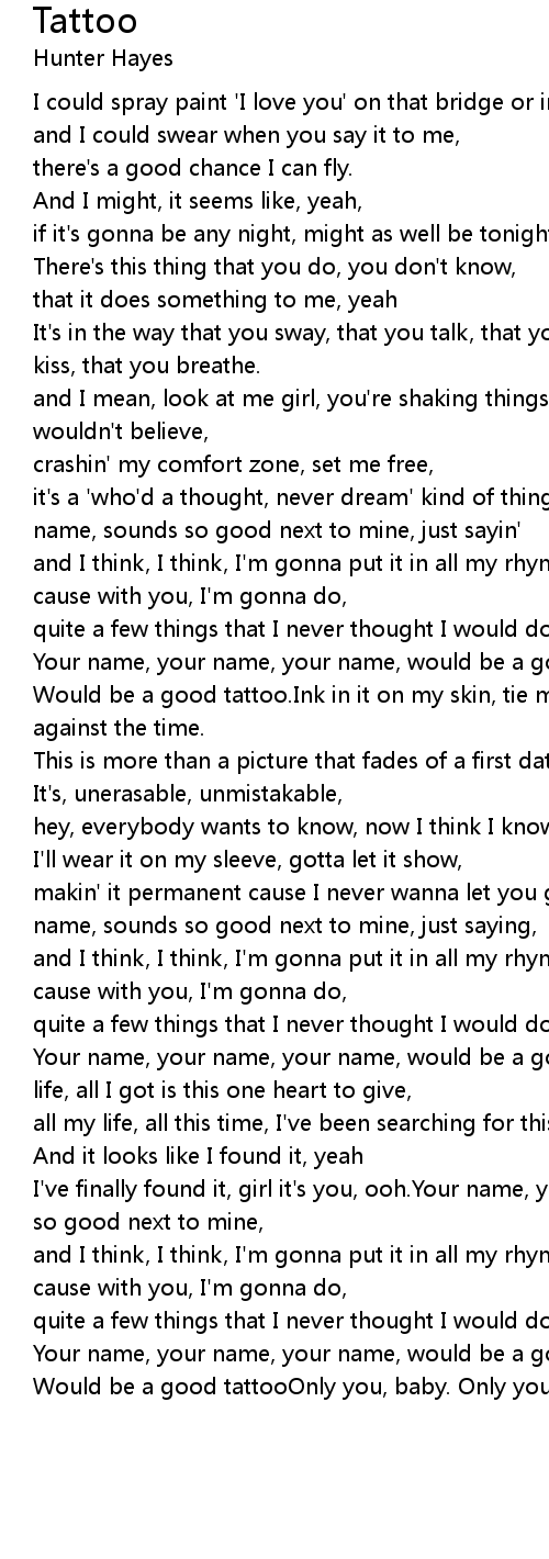 makin' it permanent cause I never wanna let you go.Your name, your name, sounds so good next to mine, just saying, |