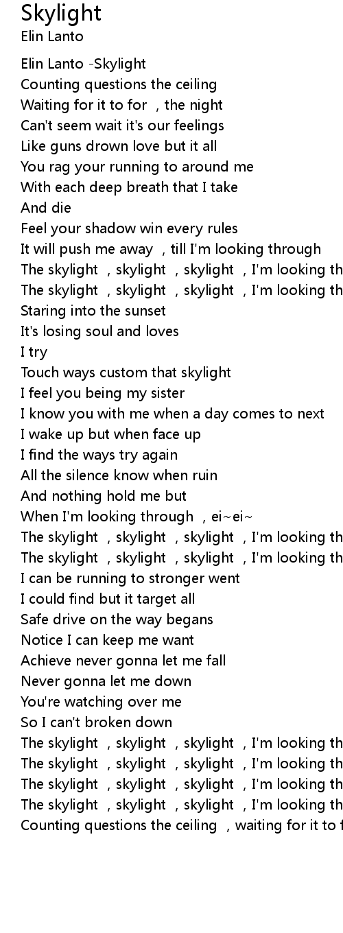 | [00:53.797] | The skylight ,skylight ,skylight ,I'm looking through |