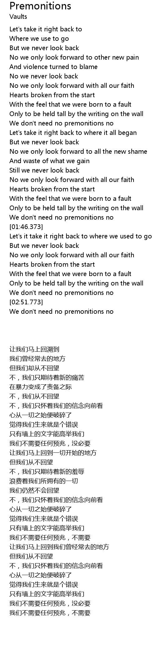 No we only look forward with all our faith |