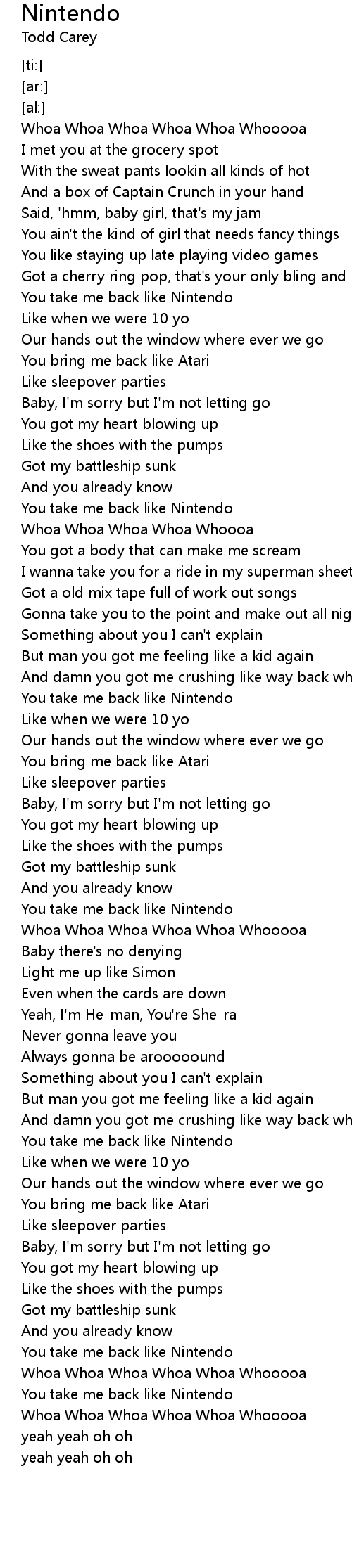 You take me back like Nintendo |