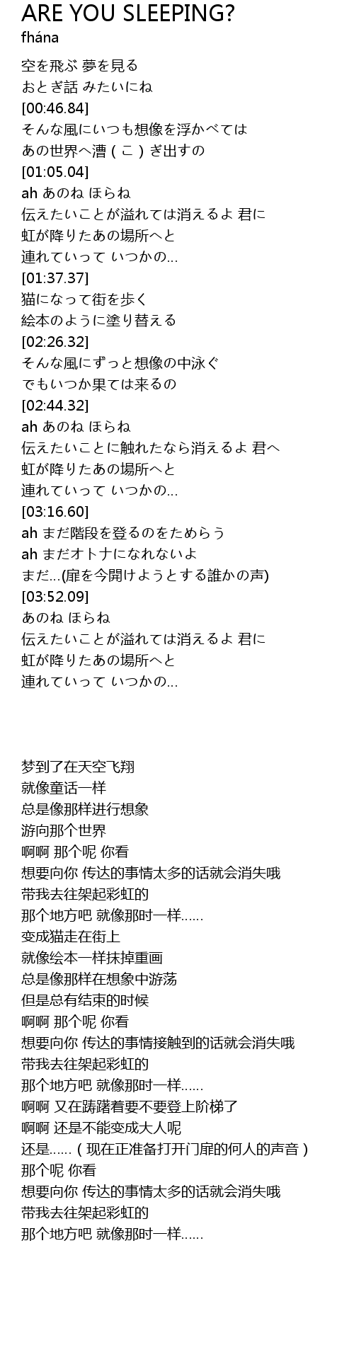 | 歌曲 | ARE YOU SLEEPING? |