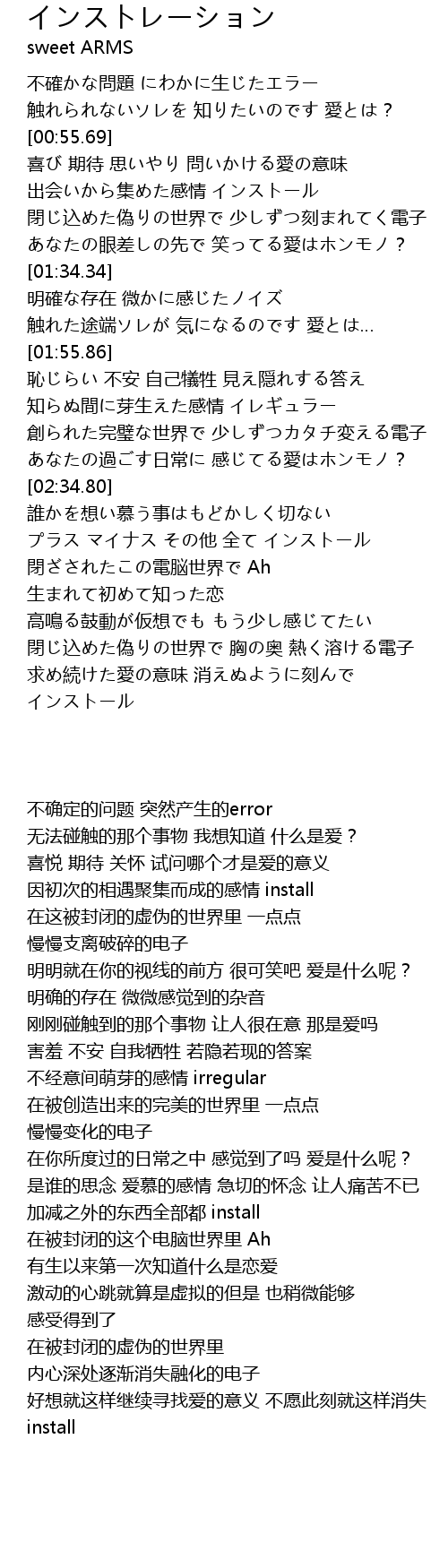 | [01:04.97] | 因初次的相遇聚集而成的感情 install |