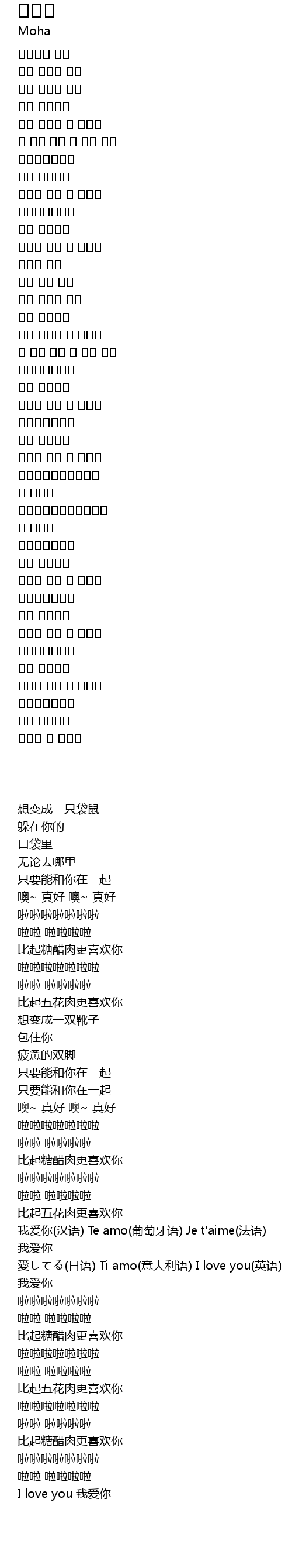 | [02:23.03] | 我爱你(汉语) Te amo(葡萄牙语) Je t'aime(法语) |