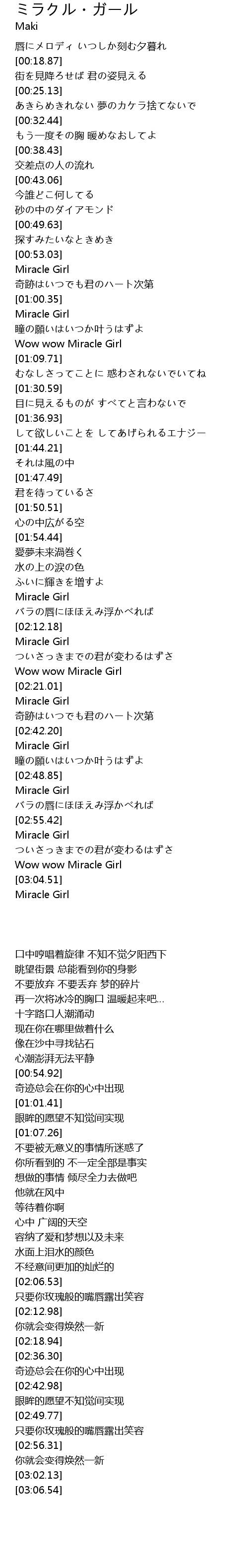 | [02:18.94] | Wow wow Miracle Girl |