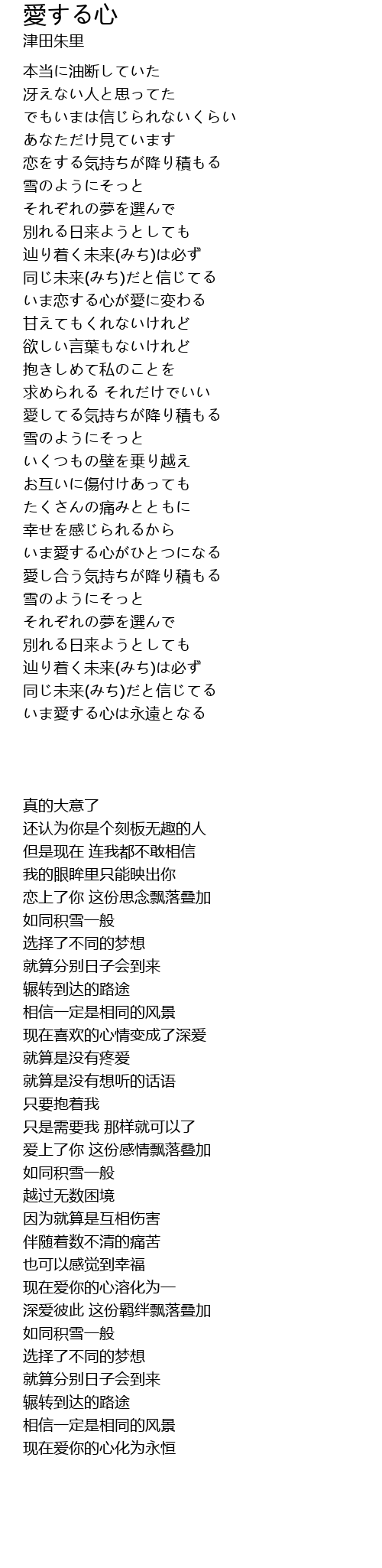 | [02:11.500] | 愛してる気持ちが降り積もる |