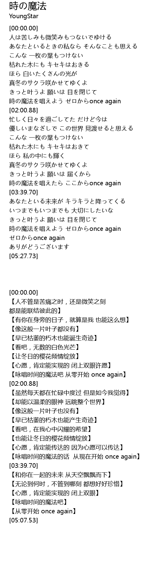 | [03:23.65] | 時の魔法を唱えたら ここからonce again |