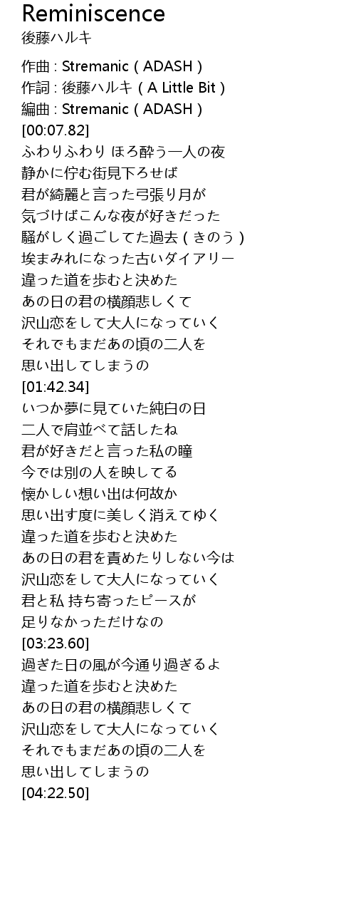 | [00:01.88] | 作詞 : 後藤ハルキ(A Little Bit) |