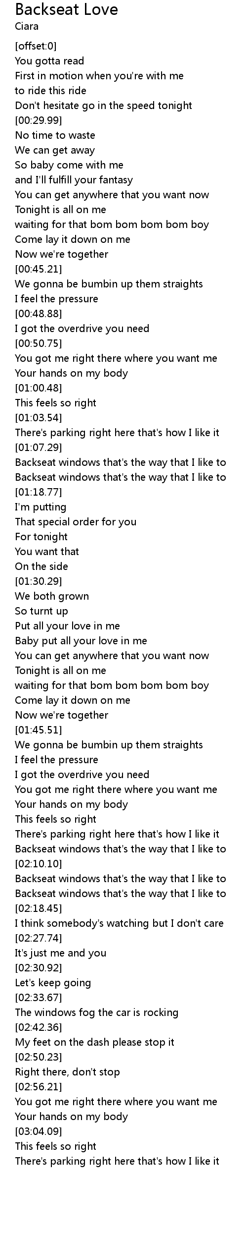| [02:14.26] | Backseat windows that's the way that I like to |