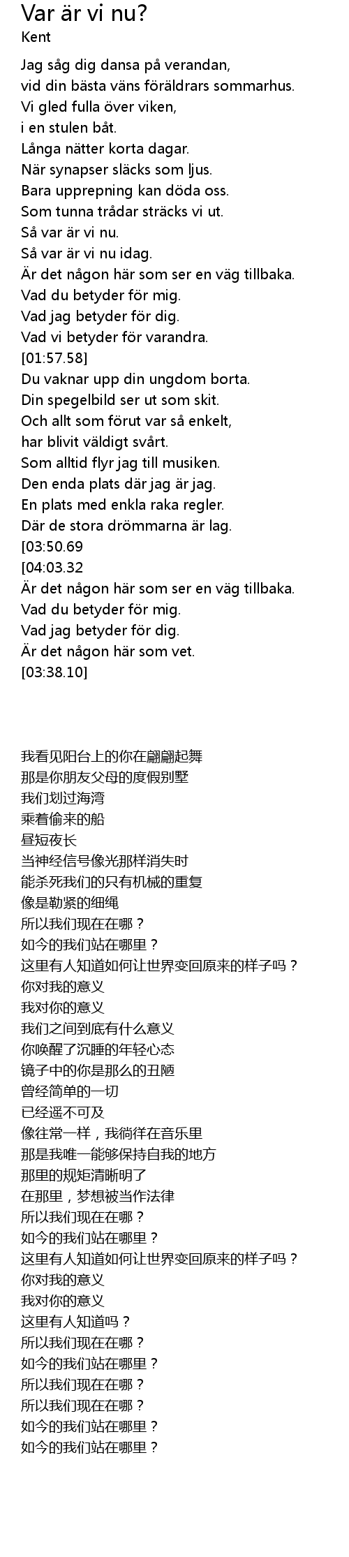 | [03:59.11][03:50.69][03:42.36][03:08.57] | Så var är vi nu. |