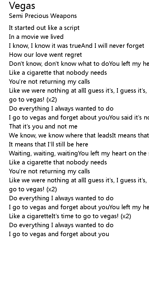 Like we were nothing at allI guess it's, I guess it's, I guess it'sIt's time to go to vegas! (x2) |