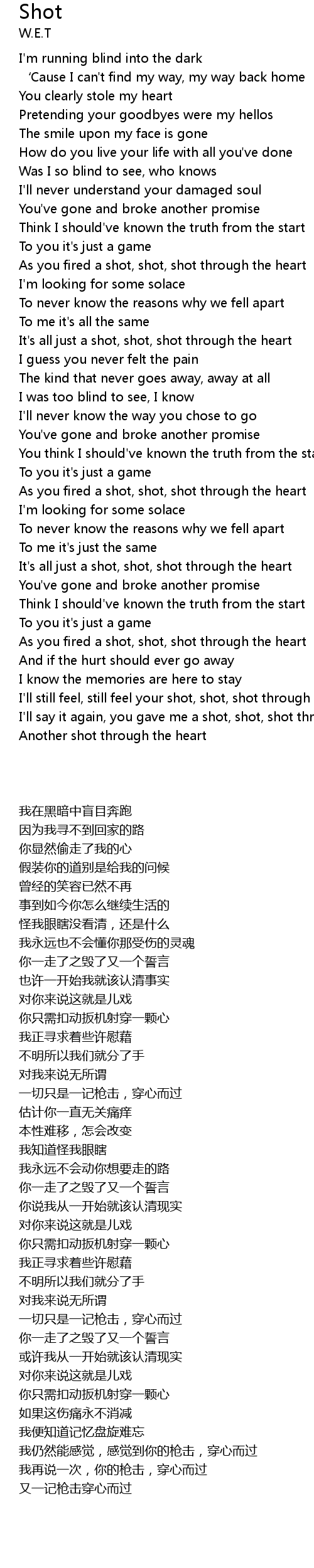 | [03:19.000] | As you fired a shot, shot, shot through the heart |
