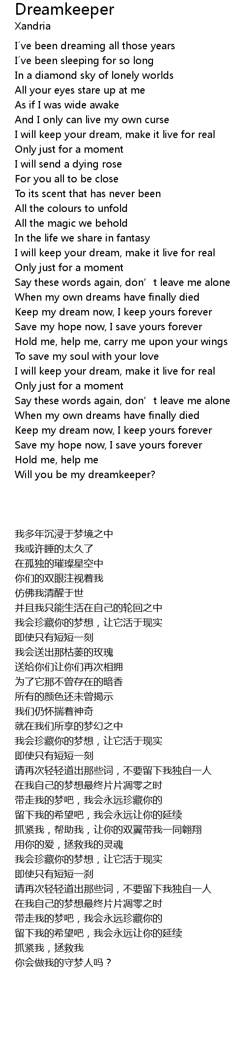 | [04:27.25] | Will you be my dreamkeeper? |