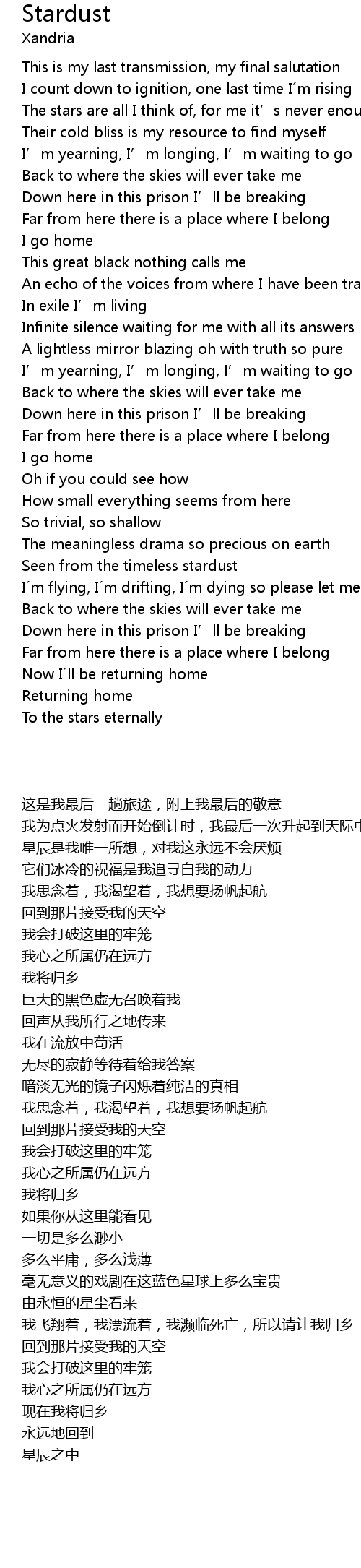 | [01:02.59] | The stars are all I think of, for me it' s never enough |