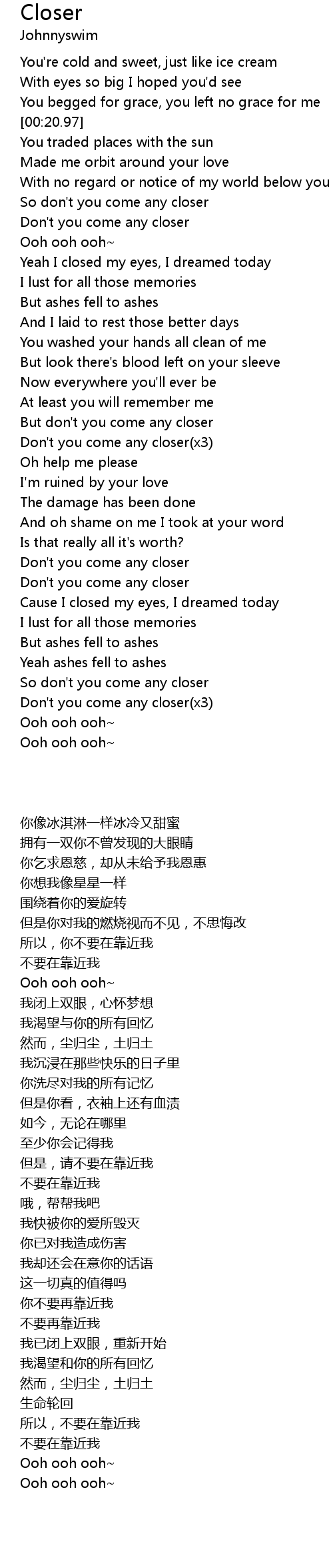 So don't you come any closer |