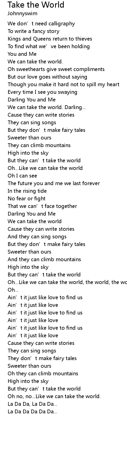| Oh…Like we can take the world, the world, the world. | |