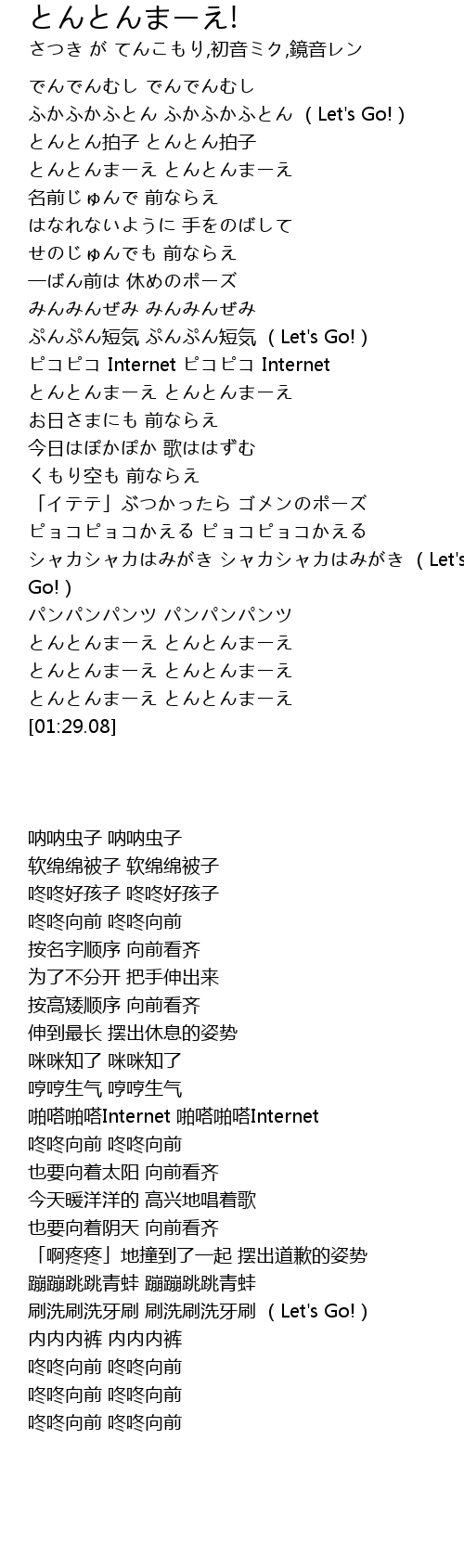 | [01:25.58] | とんとんまーえ とんとんまーえ |