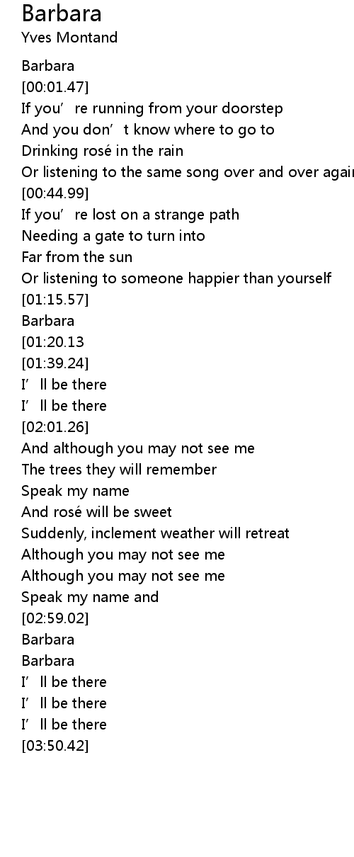 | [01:33.47][01:20.13] | Barbara |