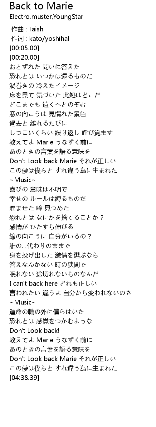 | [04:21.74] | Don't Look back Marie それが正しい |