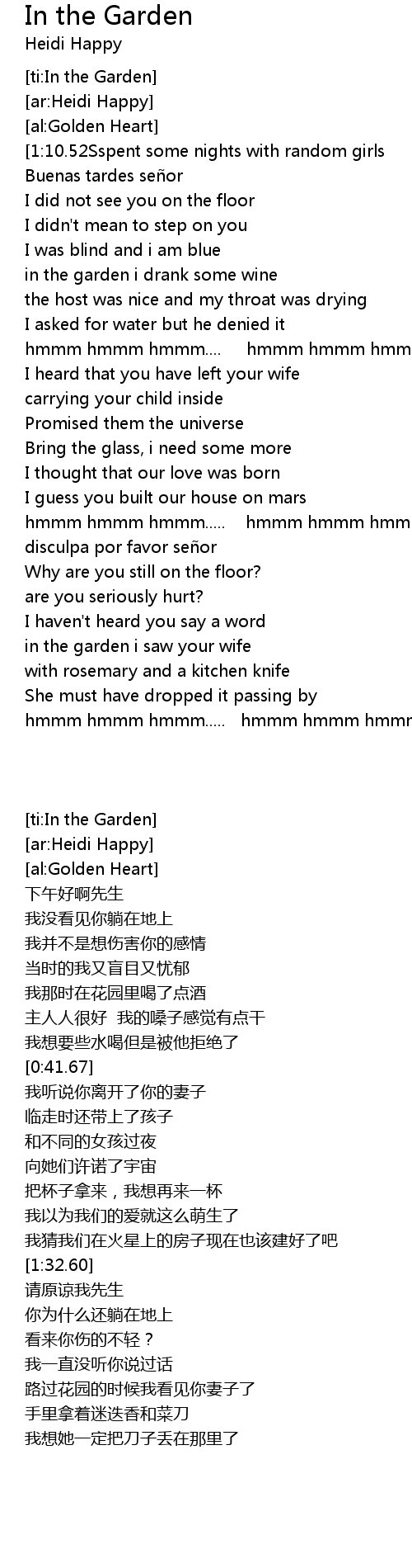 | [0:28.28] | 我那时在花园里喝了点酒 |