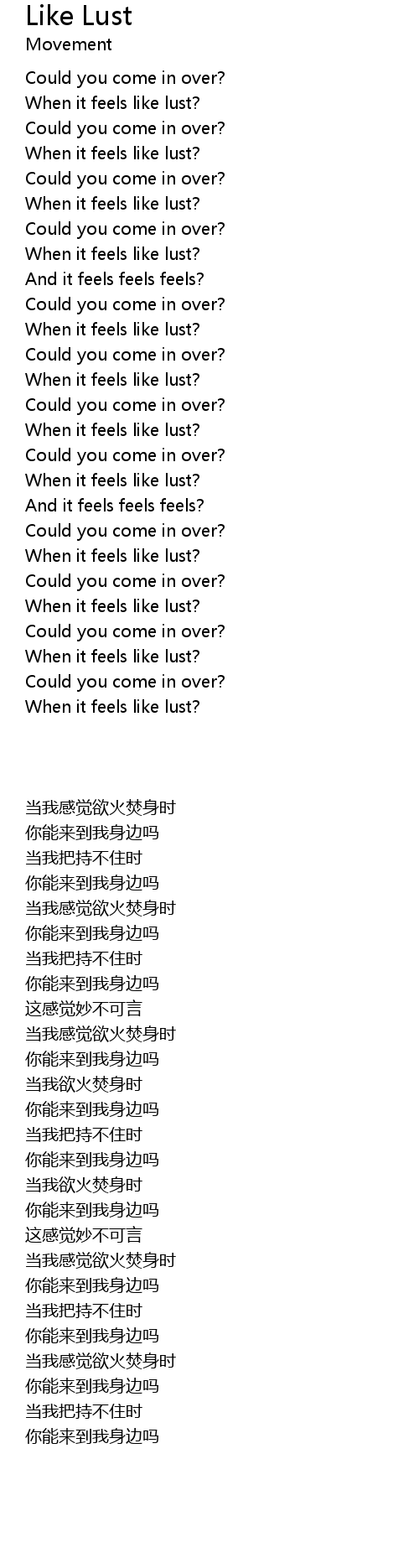 | [00:45.03] | When it feels like lust? |