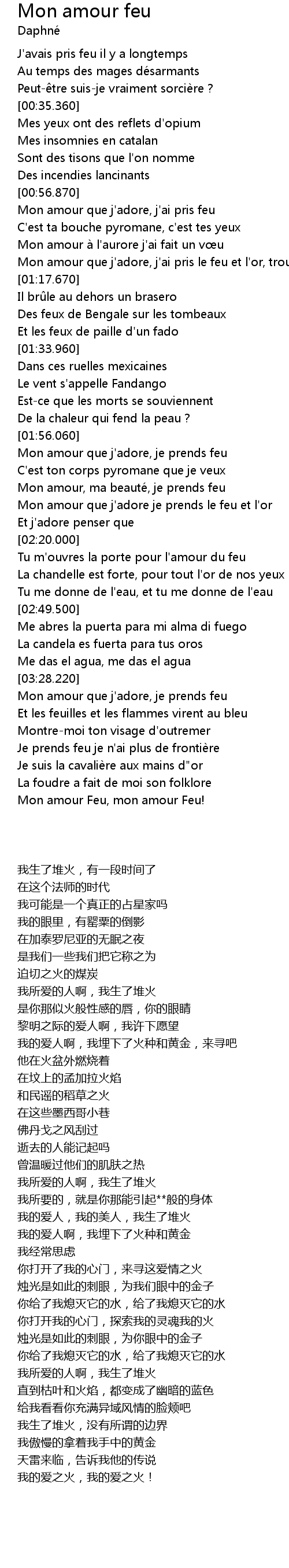 | [00:57.570] | Mon amour que j' adore, j' ai pris feu |
