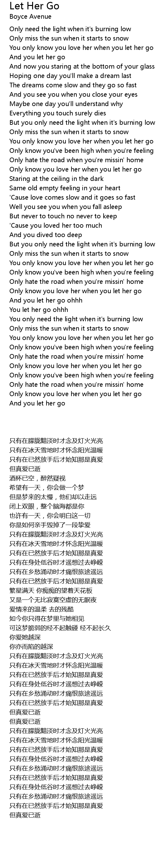 Only know you love her when you let her go |