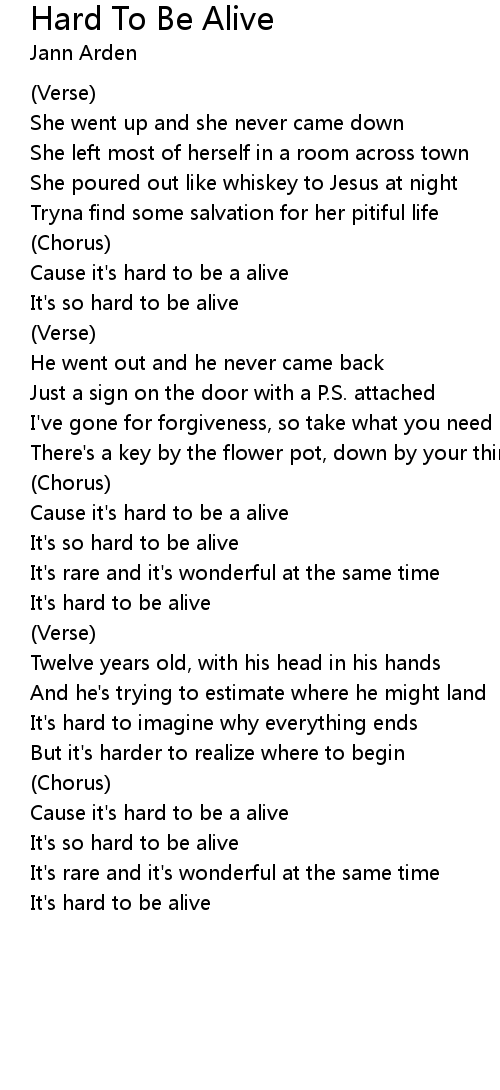 Cause it's hard to be a alive |