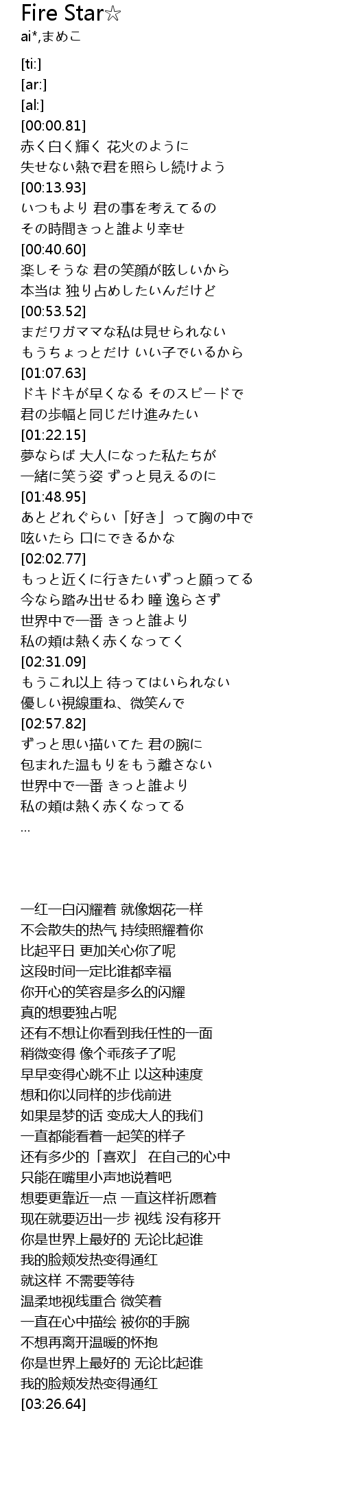 | [00:00.90] | 赤く白く輝く 花火のように |