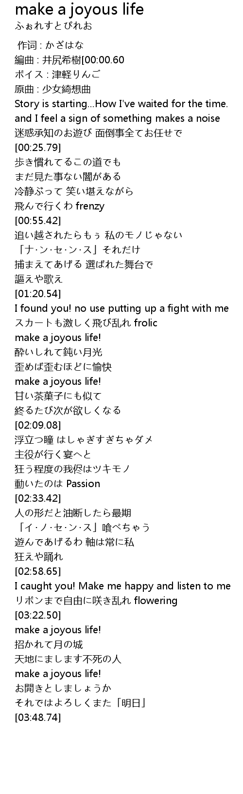 | [03:36.52] | make a joyous life! |