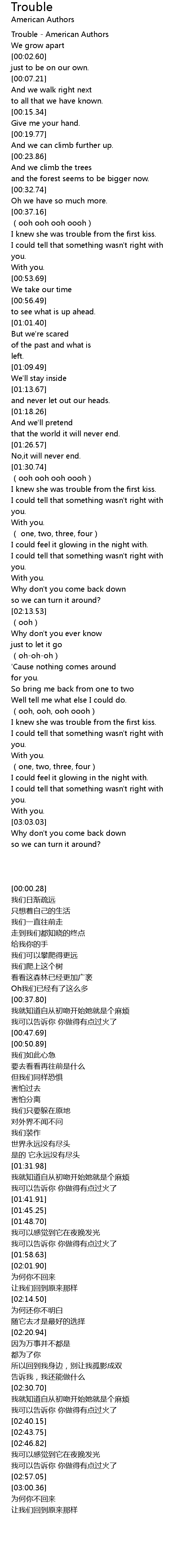 | [00:00.28] | Trouble - American Authors |