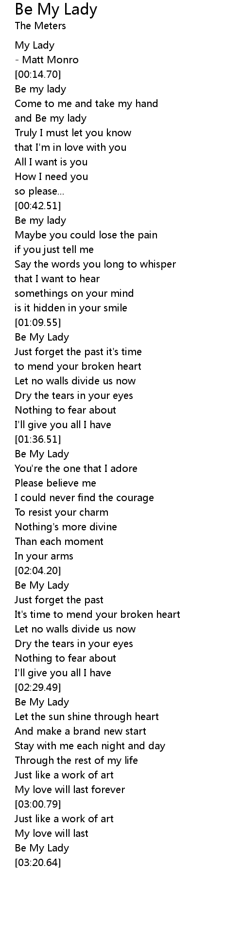 and Be my lady |
