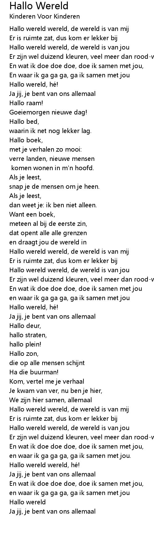 | [02:07.96] | Hallo wereld wereld, he! |