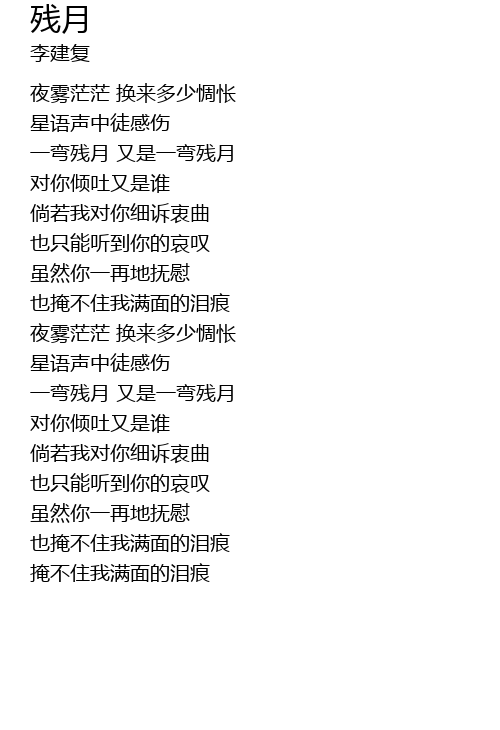 | [00:22.20] | 一弯残月 又是一弯残月 |
