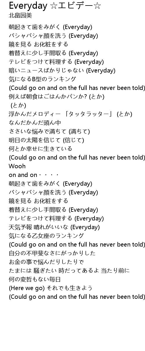 | (Could go on and on the full has never been told) Wooh on and on・・・ |