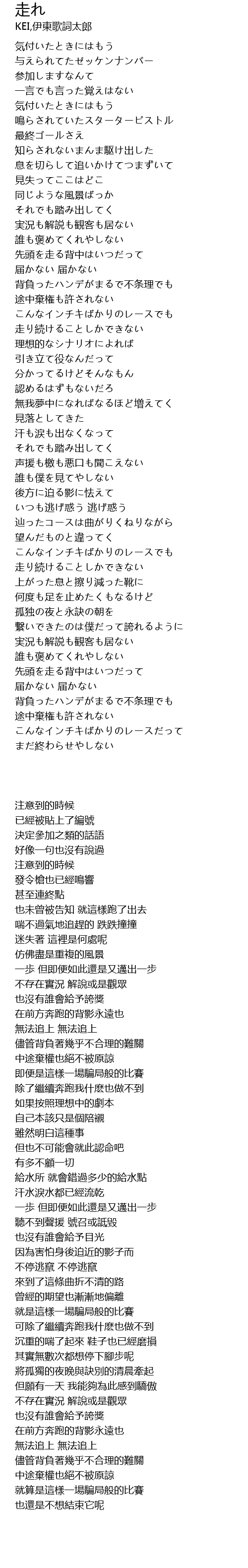 | [02:06.89] | 可除了繼續奔跑我什麽也做不到 |