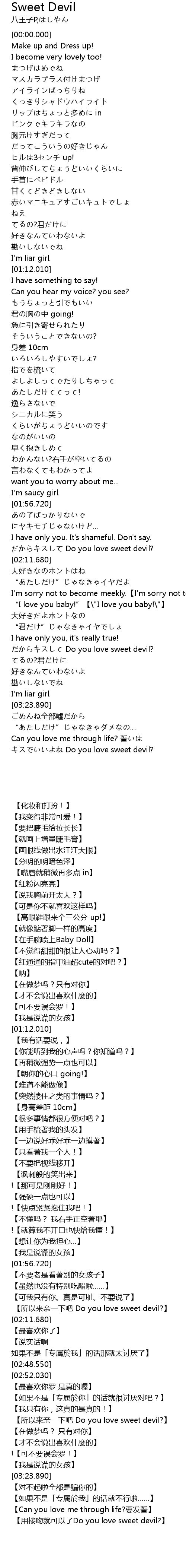 | [03:06.310] | 【所以来亲一下吧 Do you love sweet devil?】 |
