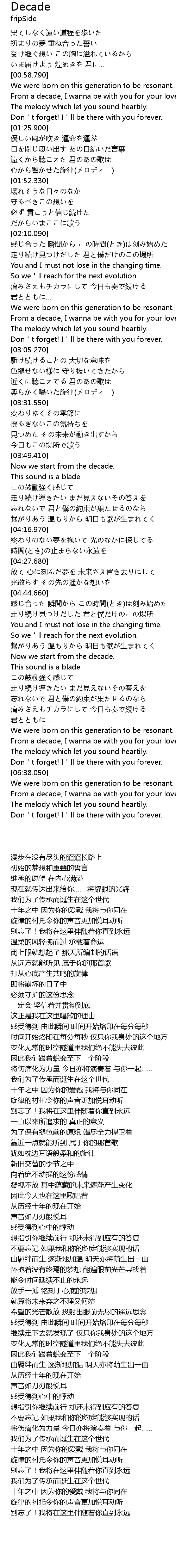 | [06:48.080] | From a decade, I wanna be with you for your love. |