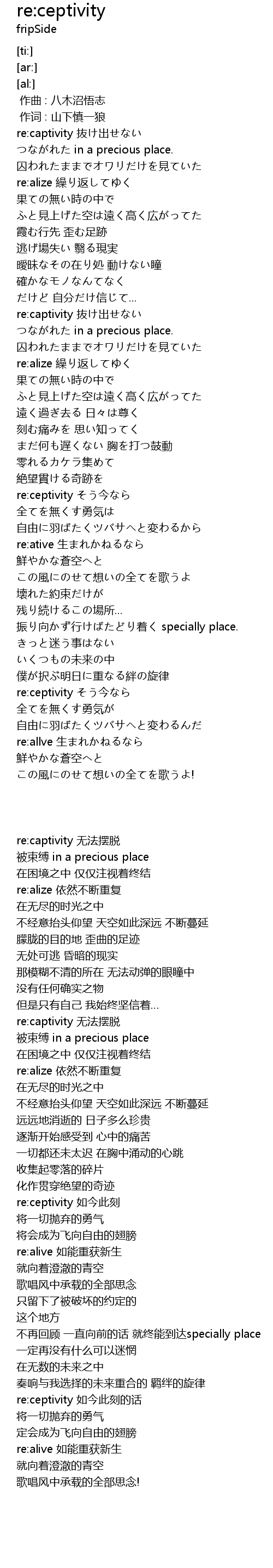 | [00:13.67] | re:captivity 无法摆脱 |