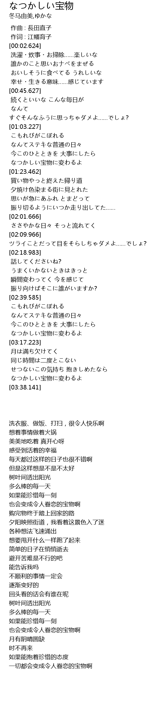 | [03:32.290] | なつかしい宝物に変わるよ |