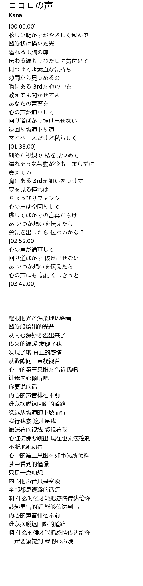| [00:55.00] | 胸にある 3rd☆ 心の中を |