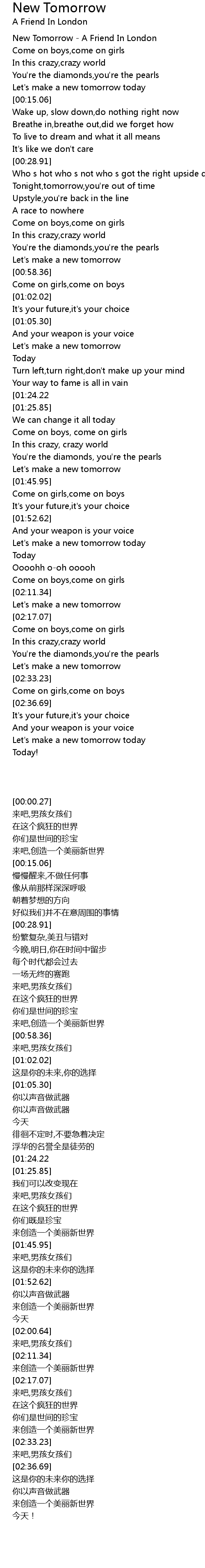 New Tomorrow - A Friend In London |