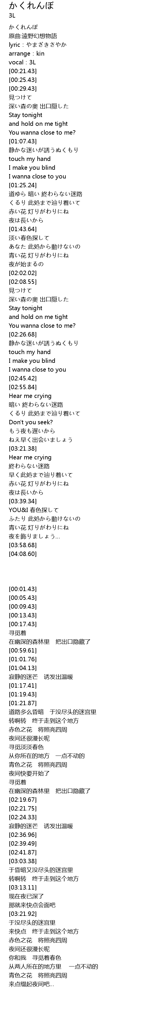 | [00:01.43] | かくれんぼ |