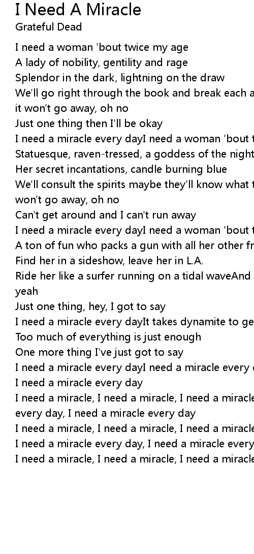 I need a miracle every dayI need a miracle every day, I need a miracle every day |