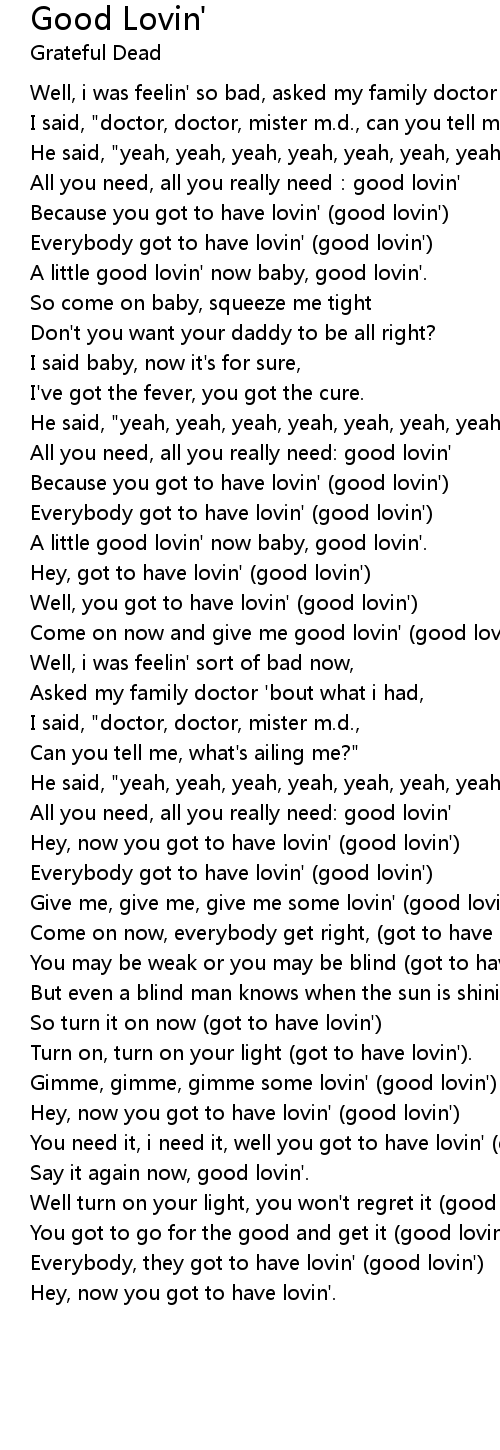 | You need it, i need it, well you got to have lovin' good lovin' | |