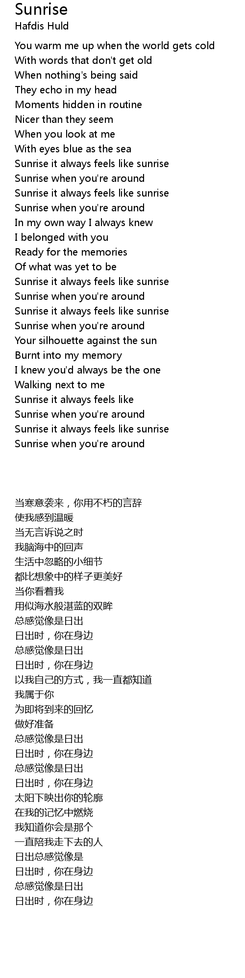 Sunrise it always feels like sunrise |