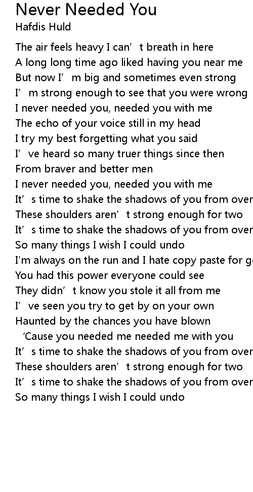 | I never needed you, needed you with me | |