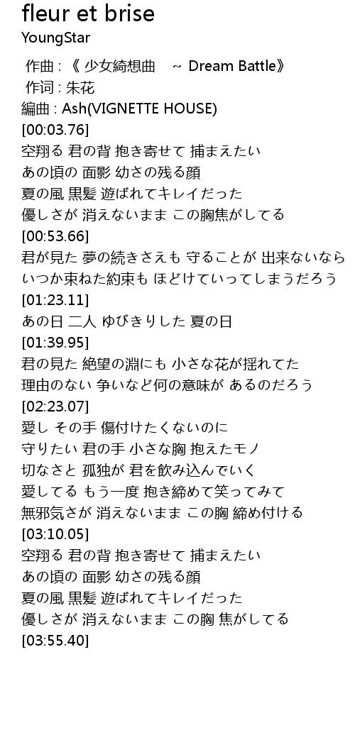 | [00:00.00] | 作曲 : 《 少女綺想曲 ~ Dream Battle》 |